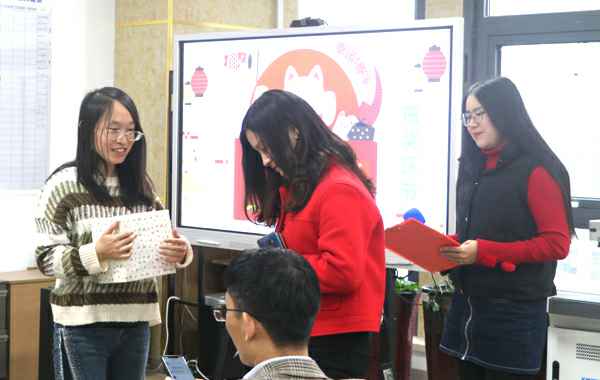 公司会每月为过生日的员工准备生日红包和蛋糕共同庆祝,虽然每次时间不同、参加的人员偶尔有不同,但公司对员工的这份关心和关爱是一样的。由张总为她们颁发生日红包。